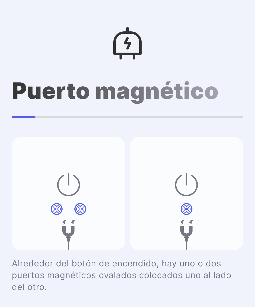 Puerto magnética: Alrededor del botón de encendido, hay uno o dos puertos magnéticos ovalados colocados uno al lado del otro.