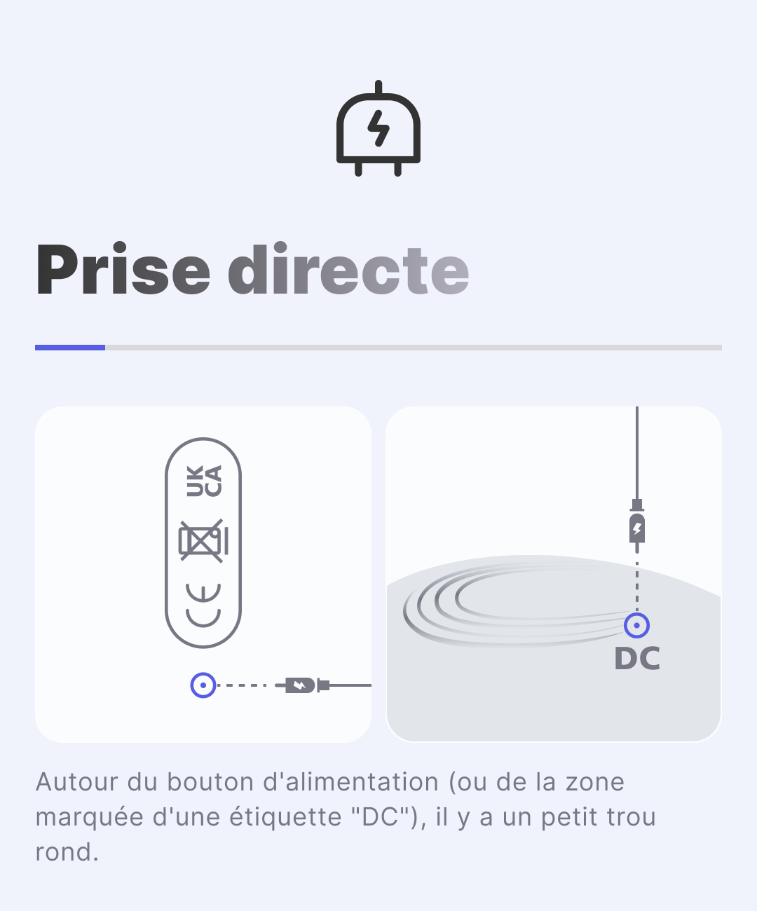 Prise directe : Autour du bouton d'alimentation (ou dans la zone marquée "DC"), il y a un petit trou rond.